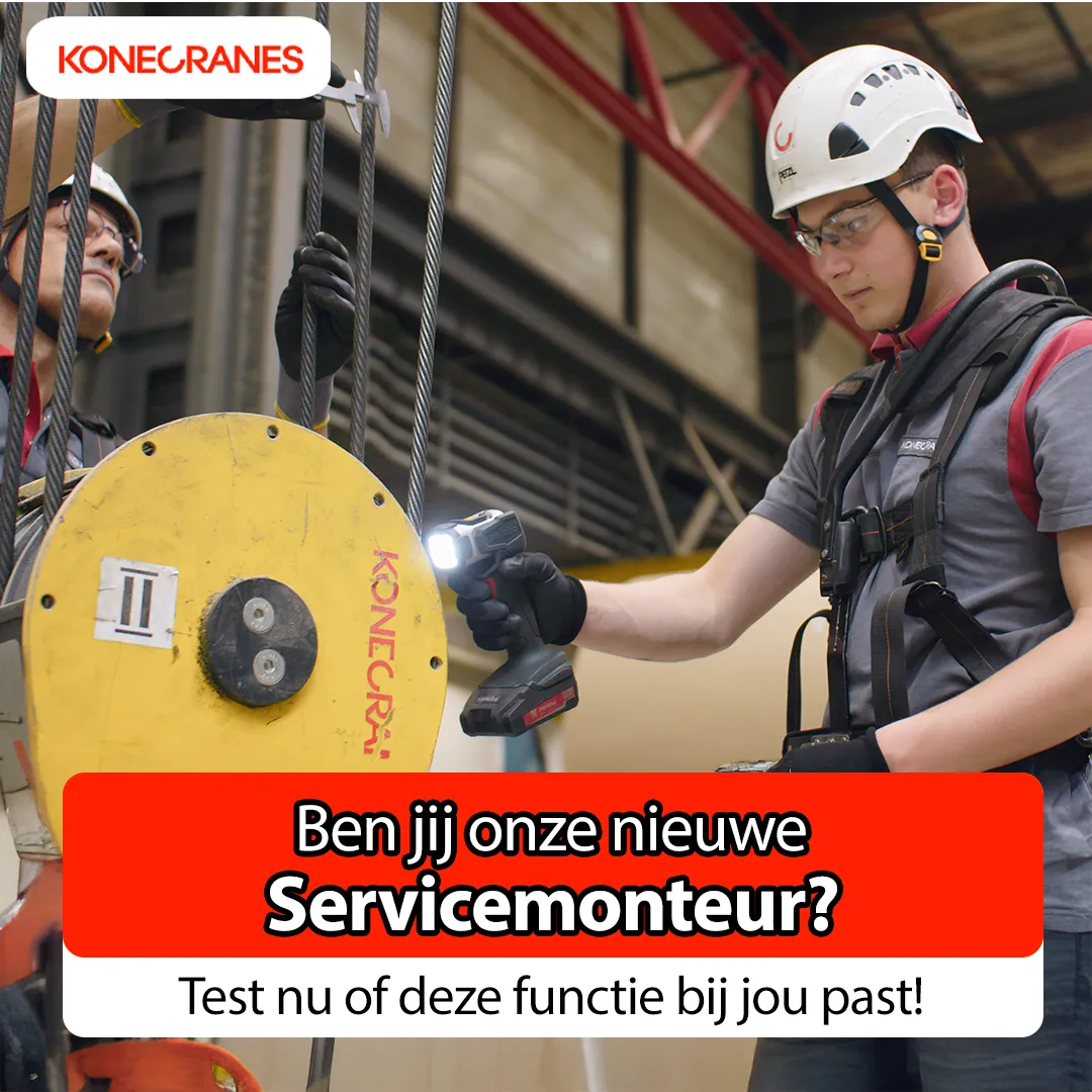 Een enthousiaste technicus met hart voor de klant en oog voor veiligheid. Je hebt bij voorkeur een mbo 3 of 4 achtergrond in elektrotechniek, mechanica of werktuigbouwkunde. Maar ook als je nog niet alles afvinkt en graag wilt leren, moedigen we je aan om te solliciteren. Geen hoogtevrees? Rijbewijs op zak? Dan zien we jou graag als gezicht van Konecranes bij onze klanten in de regio.